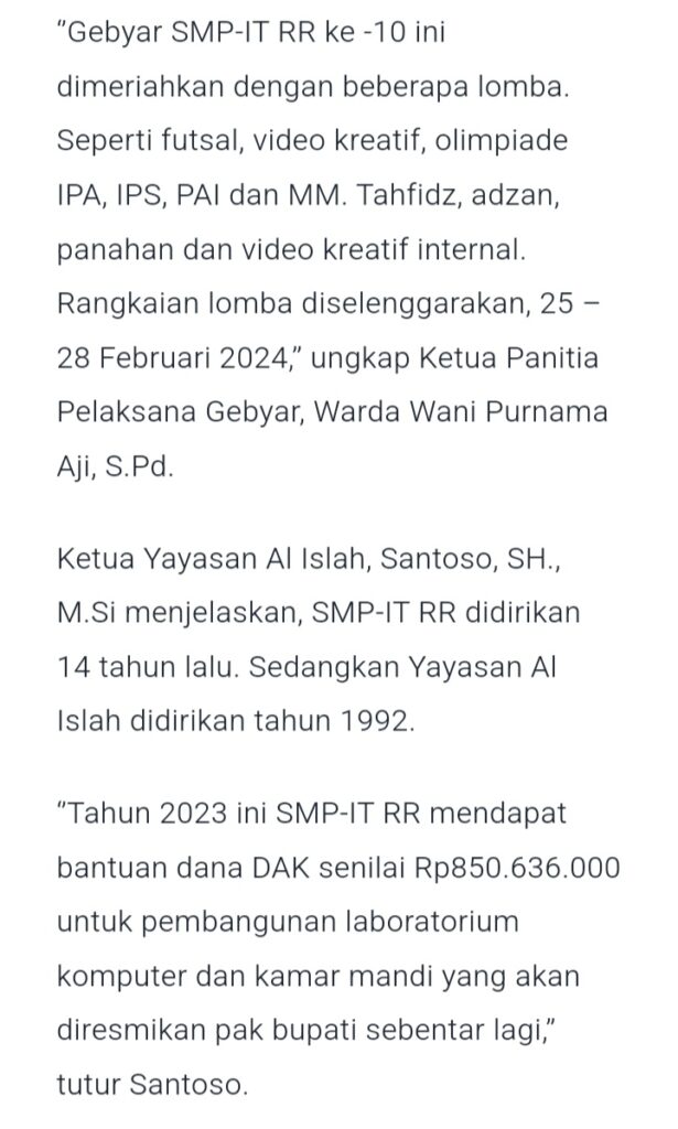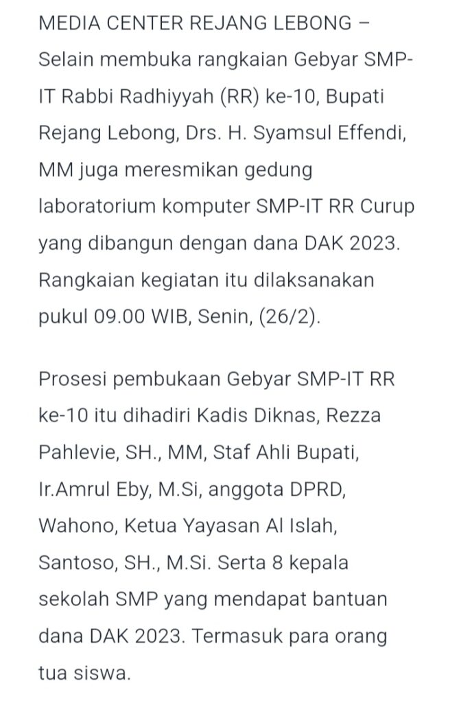 Gebyar SMP IT RR ke-10, Bupati Resmikan Lab Komputer DAK