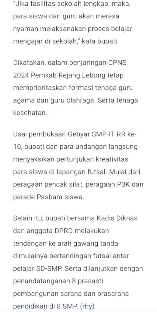 • Bupati Fikri Lagi-lagi Bangga Pelajar SDN 10 Rejang Lebong Raih Emas FLS2N 2025 Nasional