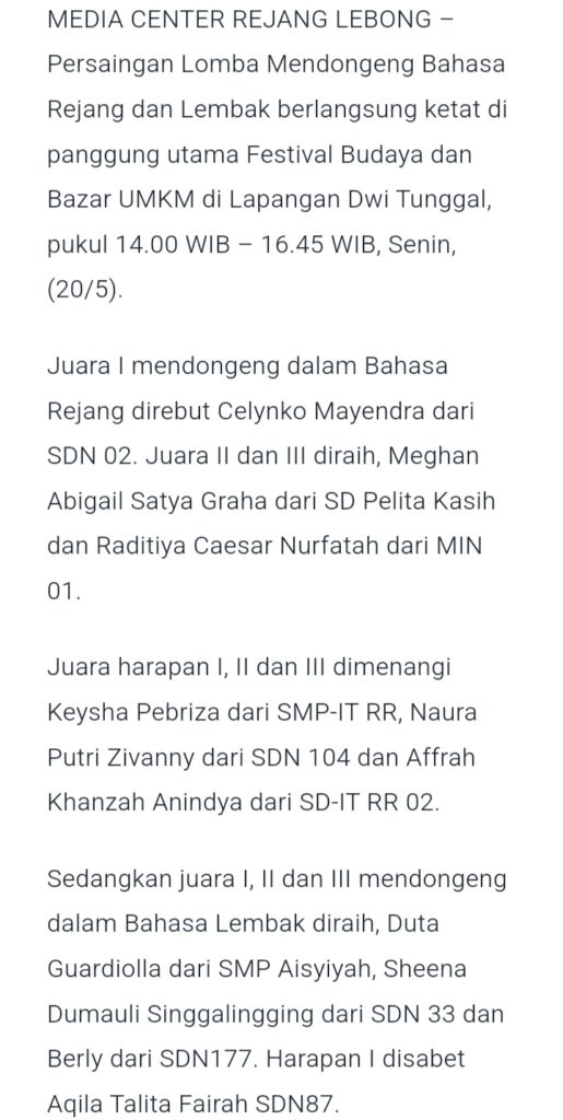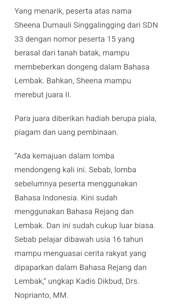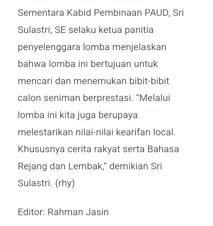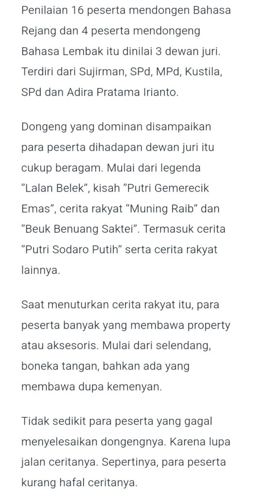 Lomba Mendongeng HUT Kota Curup