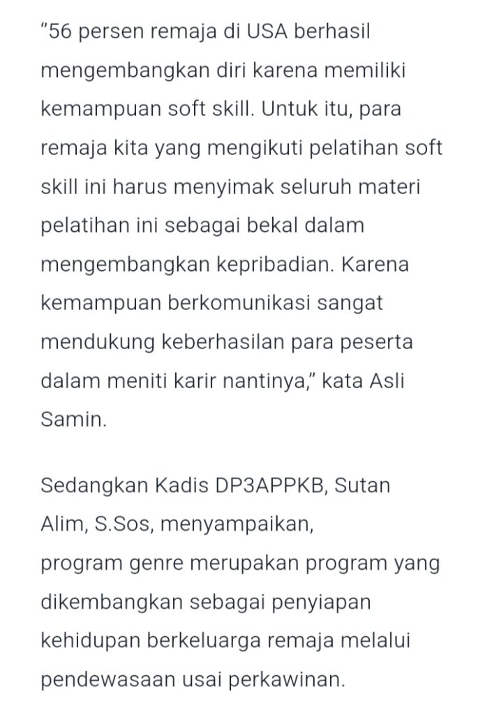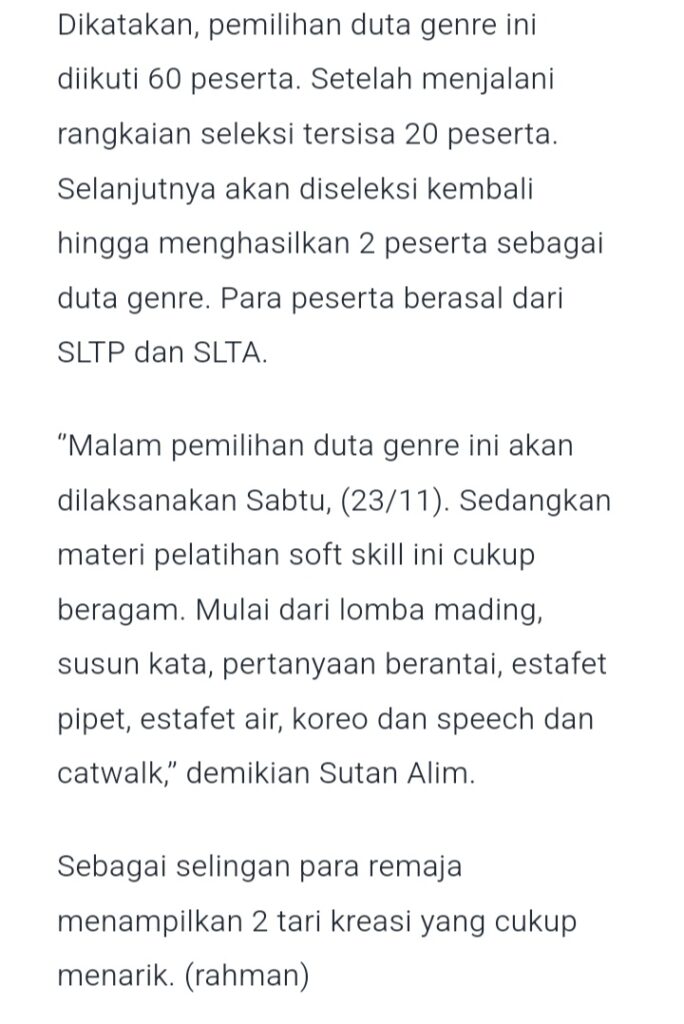 Pelatihan Soft Skill dan Pemilihan Duta Genre
