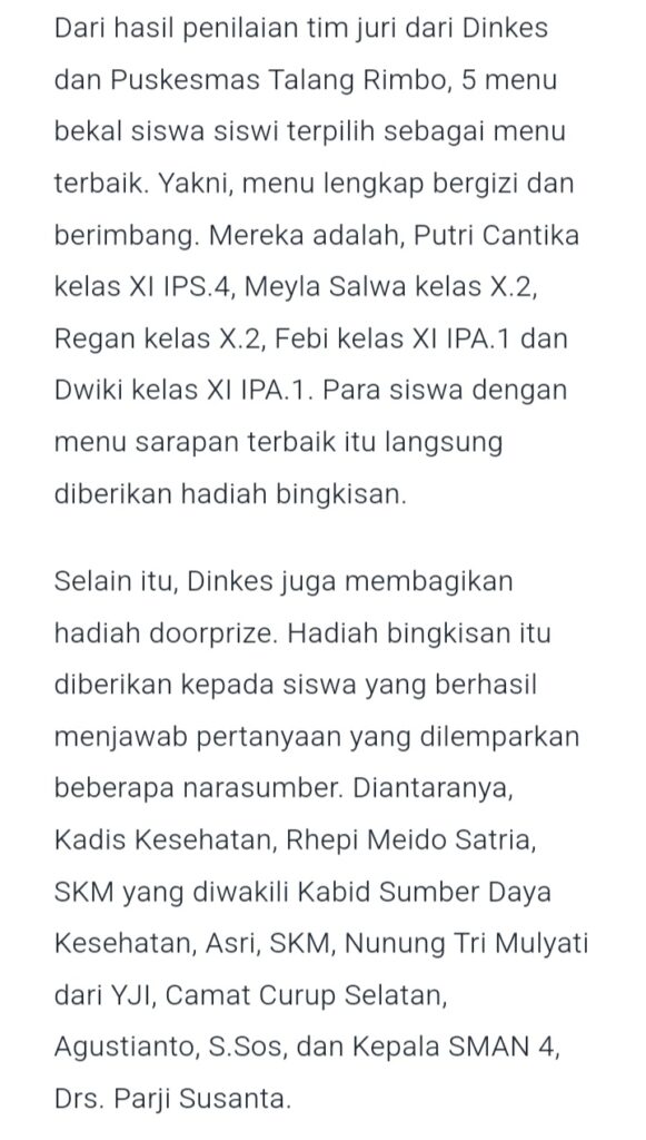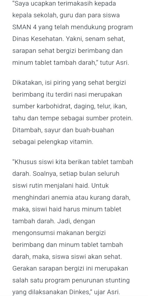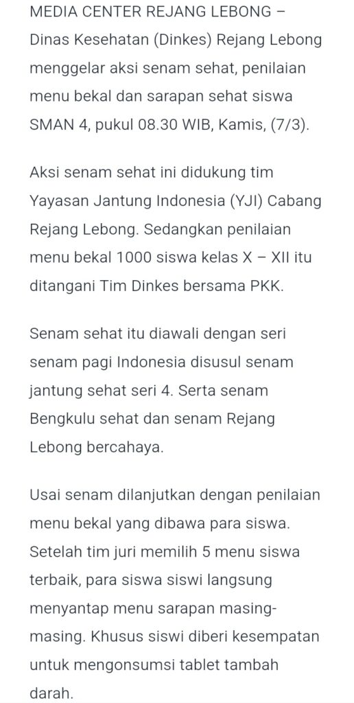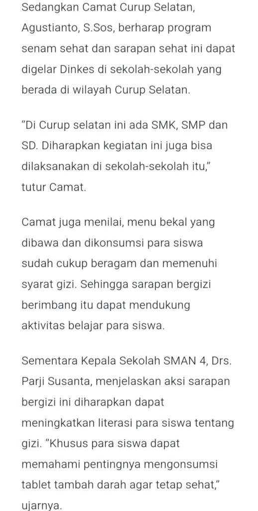 Senam Sehat dan Sarapan Bergizi Bersama Siswa SMAN 4 RL