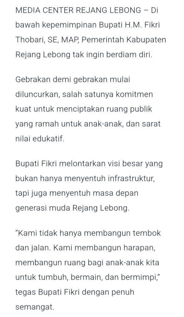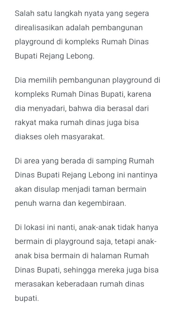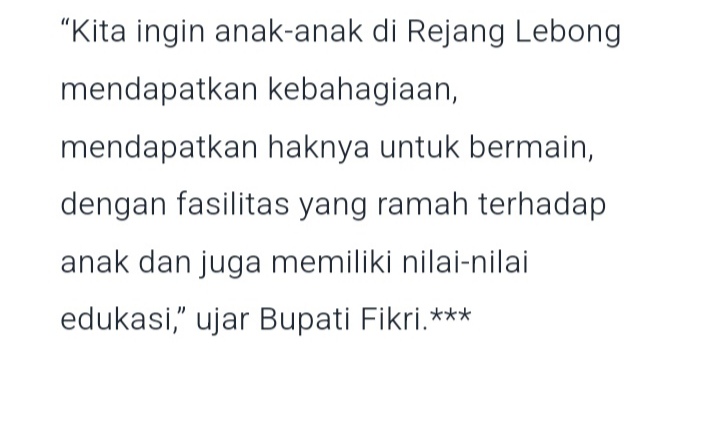 • Bupati Rejang Lebong ResmikanTaman Bermain ‘’Khalifah’’